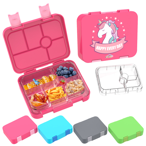 Aohea กล่องเบนโตะพลาสติก5ช่องพร้อมกล่องใส่ซอสช้อนและส้อมชุดกล่องอาหารกลางวันลายการ์ตูนสำหรับเด็กออกแบบได้ตามต้องการพร้อมถุง