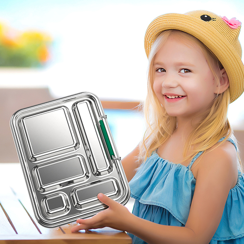 Aohea กล่องอาหารกลางวันสำหรับเด็ก, กล่องอาหารกลางวันเข้าโรงเรียนมาใหม่ใช้ซ้ำได้กันรั่วซึม3ช่องสแตนเลสกล่องอาหารกลางวันสำหรับเด็ก